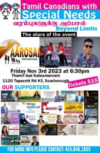 சிற்பி கல்விக்கூட 3ஆவது ஆண்டுவிழாவும் கண்காட்சியும் எதிர்ரும் 2054ஆம் ஆண்டு விடைத்திங்கள் 9ஆம்நாள் ஞாயிற்றுக்கிழமை(MAY21,2023) பிற்பகல் 2மணிக்கு கண்காட்சி தொடங்குகிறது.பிற்பகல் 4மணிக்கு ஆண்டுவிழா நிகழ்ச்சிகள் தொடங்குகிறது. இவ்விழாவில் அனைவரும் கலந்து சிறப்பிக்குமாறு அன்போடு கேட்டுக்கொள்கிறோம். கல்லூரி மாணவர்களின் நிகழ்வுகள் நடைபெறும். காலம்: 2054 விடை 9ஆம்நாள் ஞாயிற்றுக்கிழமை நடைபெறும் இடம்: மேரி வாட் கத்தோலிக்க இடைநிலைப்பள்ளி 3200 கென்னடி சாலை இசுக்காபுரோ ஒன்ராரியோ பேச 6472097449. 416214 9300 Date:May21,2023 @2PM Place:3200 Kennady Road Scarborough…