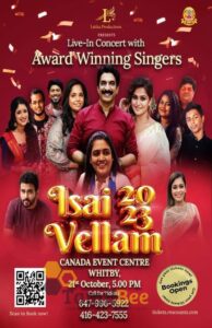 குமரனின் இன்னிய இசை 2023 அக்டோபர் 7ஆம் நாள் கனடா ஒன்ராரியோ மார்க்கம் நகராட்சியில் அமைந்துள்ள மார்க்கம் கலையரங்கில் நடைபெறுகிறது.